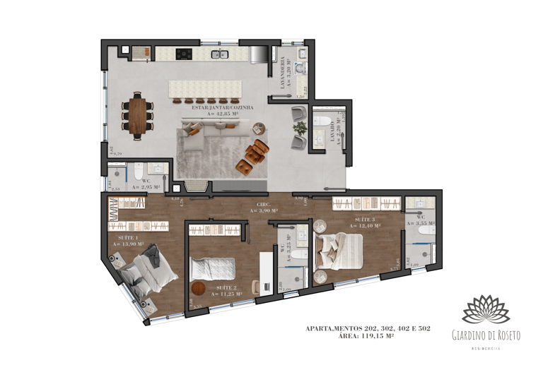 Residencial com 9 unidades, apartamentos com 3 suítes (120m²) ou 2 dormitórios (80m²), lareira, churrasqueira, vagas de garagem. Excelente posição solar. Apenas duas quadras da avenida Dom Joaquim.